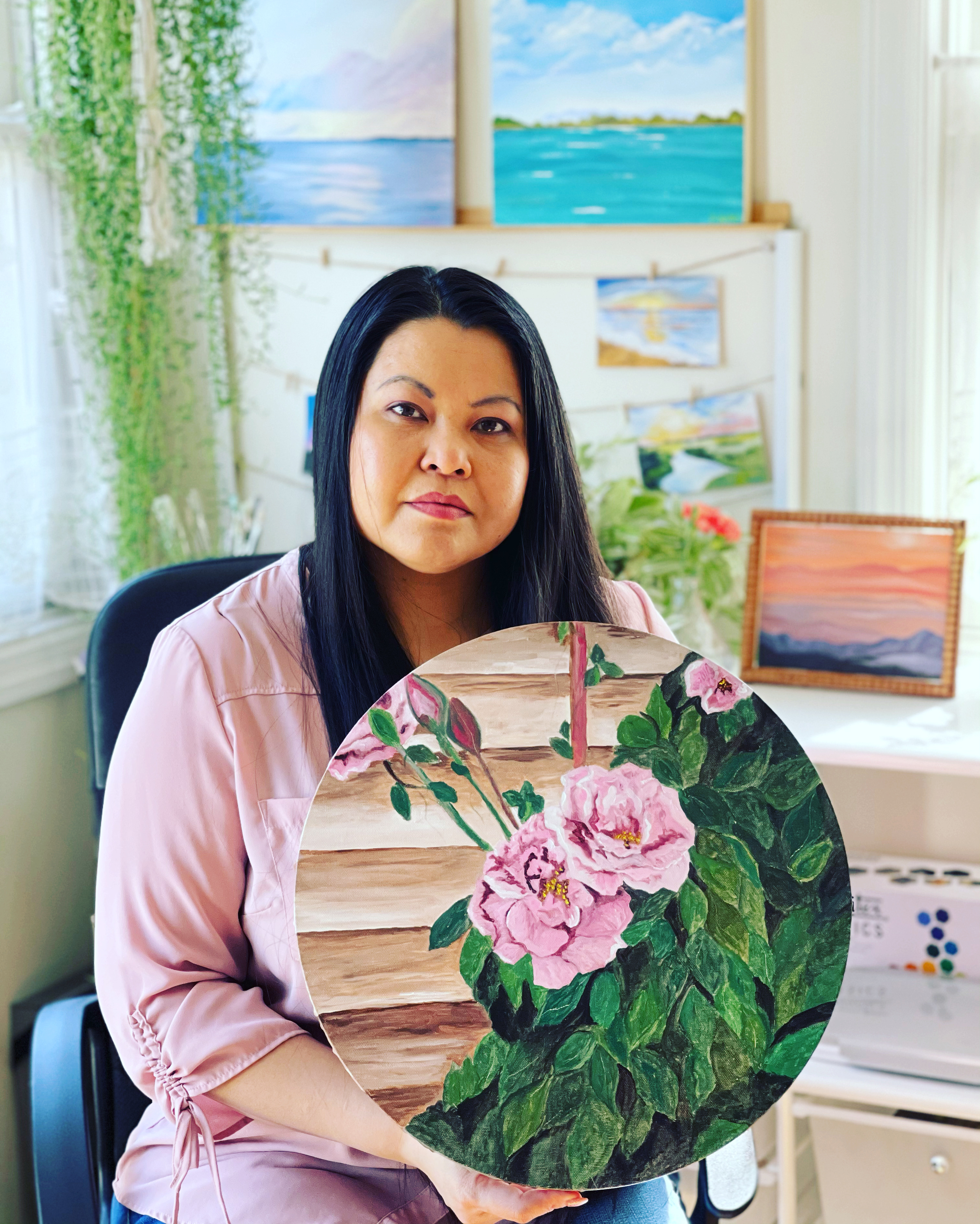 This reference came from my friend beautiful rose garden in Texas. He has one of the best rose garden I ever seen. With his permission I used his photo as a reference and I enjoyed painting this on a 16×16 round canvas.