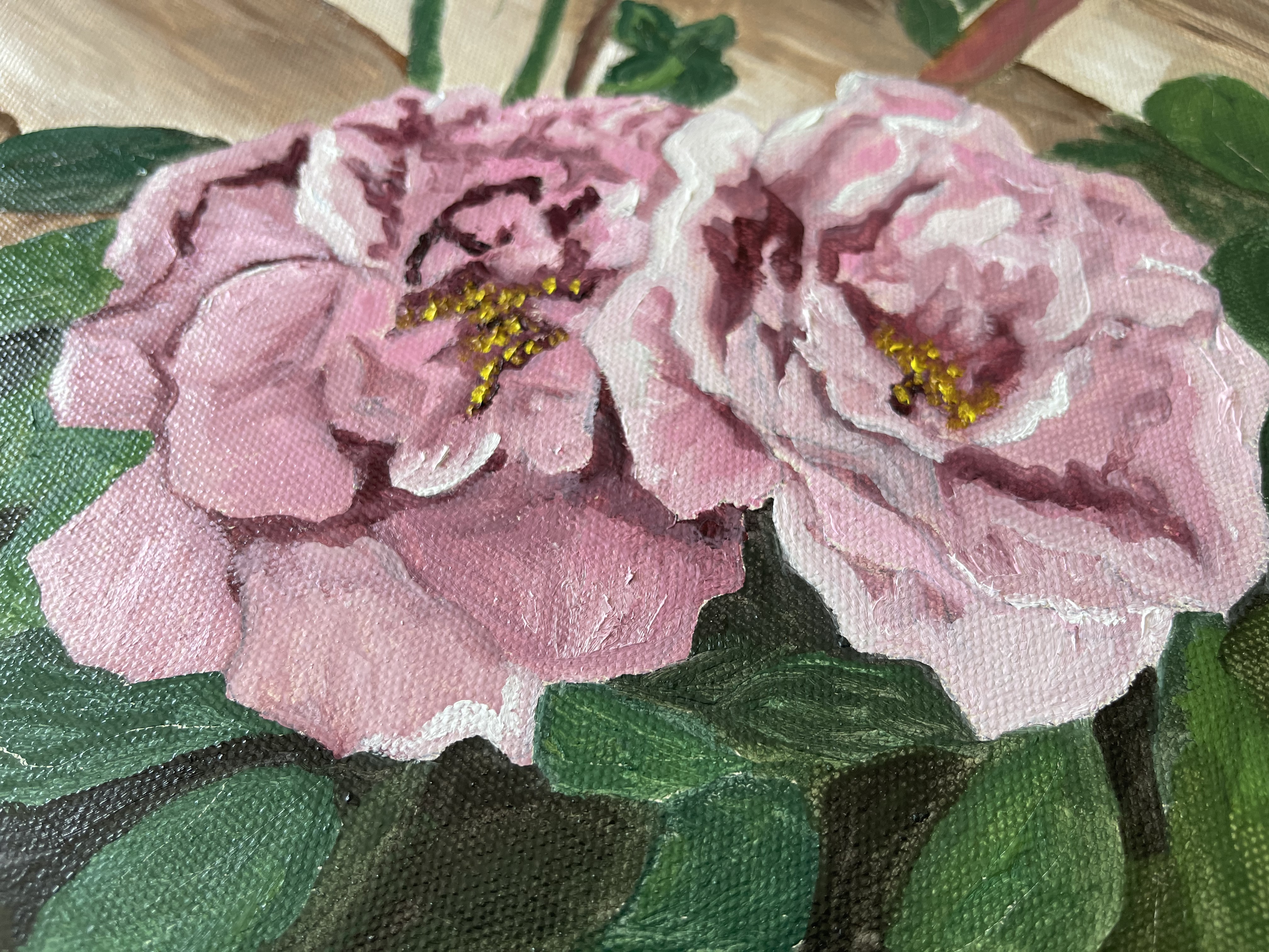 Description of Pink Rose Oil Painting on Round Canvas Original Roses